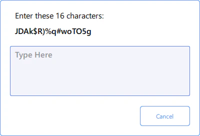You set a password when creating the plan. To perform the action, you must enter the password. Good for: Mild accountability. Adds a speed bump that makes you pause and think before acting.Random Chars