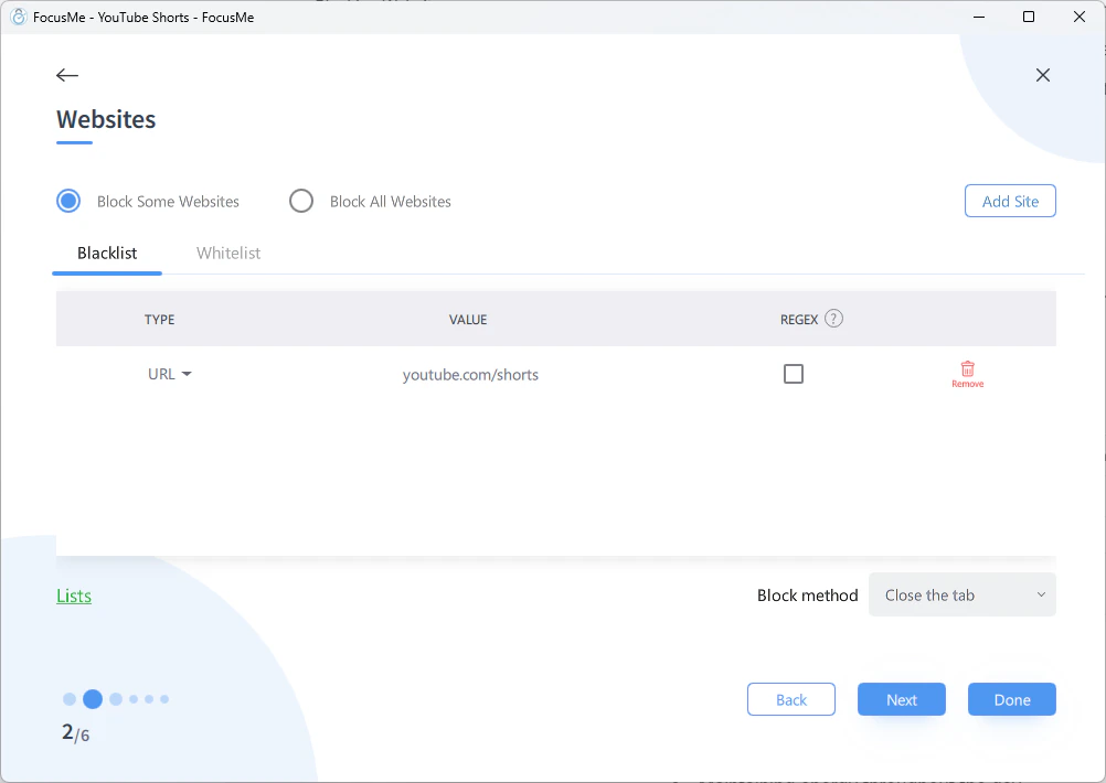 YouTube also shows Shorts on the main homepage and in search results. To catch these, add a title-based entry:- Add a website entry with Title matching: